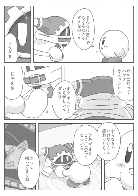 タランザやスージー・三魔官たちのように「誰の目に見ても悲壮極まった過去」が(少なくとも原作で明かされている部分を見る限り)マホロアには無くただ友達との出会いで彼の魂(心)が救われたという視点のミクロさ・舞台の広さと事件の規模に比した世界とのかかわりの小ささがWii/Wiiデラの物語のすごく好きなところ